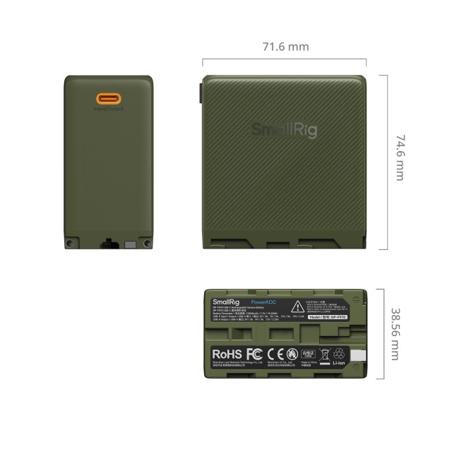 Der SmallRig NP-F970 USB-C Kamera-Akku ist ein leistungsstarker, vielseitiger und intelligenter Direktlade-Akku mit einer Kapazität von 10500mAh (76,65Wh). Seine große Kapazität sorgt für eine lang anhaltende Leistung und deckt den Energiebedarf während der Aufnahme. Der Hauptanschluss an der Unterseite des Akkus kann eine Vielzahl von Geräten wie Kameras, LED-Videoleuchten, Monitore, motorisierte Schieberegler und andere mit Strom versorgen. Er ist außerdem mit einem USB-C-Anschluss und einem USB-A-Anschluss ausgestattet, die das Aufladen von elektronischen Geräten wie Smartphones, Tablets und anderen elektronischen Geräten ermöglichen. Der USB-C-Anschluss fungiert sowohl als Eingang als auch als Ausgang und hat eine maximale Leistung von 36 W. Das Aufladen des Akkus über den USB-C-Anschluss dauert nur 3,5 Stunden und ermöglicht so eine effiziente Erstellung. Der USB-A-Anschluss bietet eine Ausgangsfunktion mit einer maximalen Leistung von 27 W und erweitert die Funktionalität des Akkus durch seine verschiedenen Schnittstellen. Der USB-C- und der USB-A-Anschluss sind parallel geschaltet und ermöglichen das gleichzeitige schnelle Aufladen von zwei Geräten. Dieser Akku verfügt außerdem über Touch-Tasten und ein Display zur Anzeige des Akkustandes, das präzise Informationen über den Akkustand liefert und so jederzeit eine einfache Überwachung des Akkustatus ermöglicht. Diese Akkus zeichnen sich durch eine innovative Mischung aus modernster Technologie und stilvollen Designelementen aus, wobei das farbenfrohe Außendesign die optische Attraktivität erhöht. Darüber hinaus verfügt dieser Akku über hochwertige Akkuzellen und intelligente Management-Chips und ist mit zahlreichen Schutzfunktionen für Ihre kreativen Bemühungen ausgestattet.
