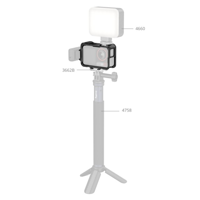 SmallRig Cage für DJI OSMO Action 5 Pro / 4 / 3 5135 wurde für den DJI OSMO Action 5 Pro, Action 4 und Action 3 entwickelt und verbessert das Erlebnis der Vlog-Aufnahmen. Der Käfig verfügt über drei kalte Schuhhalterungen zur Befestigung von Zubehör, wie z.B. dem DJI Mic 2 und LED-Videoleuchten (ID 4660), die optimierte Licht- und Soundeffekte ermöglichen. Eine seitliche magnetische Schnellwechselhalterung ermöglicht die einfache Befestigung von magnetischem Originalzubehör von DJI, wie z.B. dem Selfie-Stick, was einen nahtlosen Übergang zwischen horizontalen und vertikalen Aufnahmen ermöglicht.