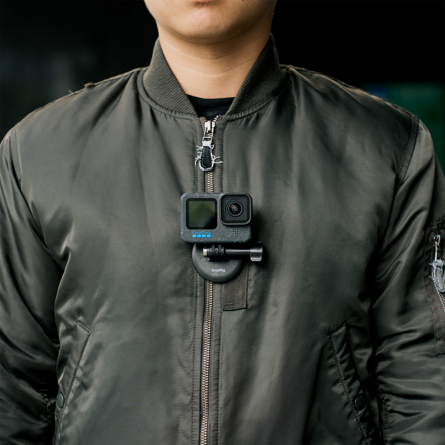 Eine starke magnetische Verbindung zwischen der Basis und der Kamerahalterung ermöglicht einen schnellen Wechsel zwischen Hoch- und Querformat sowie eine omnidirektionale Einstellung (nach oben, unten, links und rechts) für eine optimale Bildgestaltung. Für diskrete Aufnahmesituationen kann die gesamte Baugruppe bequem unter der Kleidung getragen werden, ohne dass eine sichtbare Befestigung erforderlich ist.
