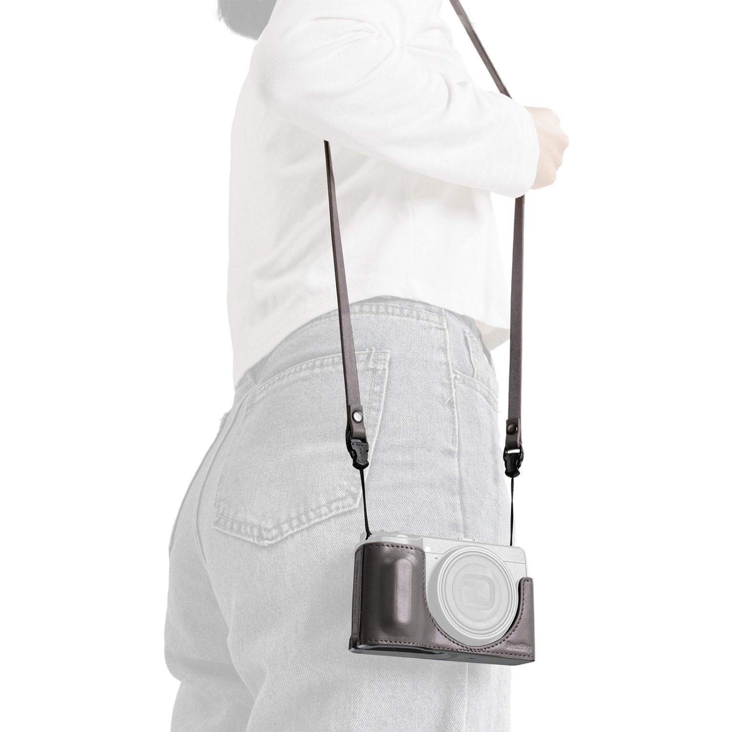 Der aus hochwertigem Echtleder gefertigte Gurt vereint Weichheit, Atmungsaktivität und Langlebigkeit und bietet den ganzen Tag über Komfort bei minimaler Belastung der Hand. Seine schlanke Breite von 1 cm (0,4 Zoll) und seine feste Länge von 120 cm (47,2 Zoll) ergänzen das kompakte Design der Ricoh und passen sich der Größe und Statur der meisten Benutzer an.