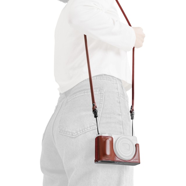 Der aus hochwertigem Echtleder gefertigte Gurt vereint Weichheit, Atmungsaktivität und Langlebigkeit und bietet den ganzen Tag über Komfort bei minimaler Belastung der Hand. Seine schlanke Breite von 1 cm (0,4 Zoll) und seine feste Länge von 120 cm (47,2 Zoll) ergänzen das kompakte Design der Ricoh und passen sich der Größe und Statur der meisten Benutzer an.