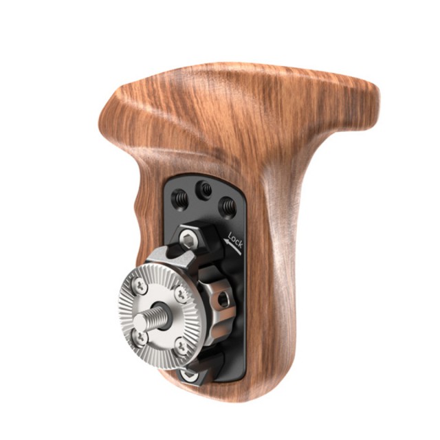 SmallRig Right-Side Wooden Grip mit ARRI Rosette 1941 ist so konzipiert, dass er über eine ARRI-Standard-Rosette mit einem Bereich von 360° einstellbar auf jedes Kamera-Rig montiert werden kann. Der Griff kann auf der rechten Seite des Kamerakäfigs, der Platte und des ARRI-Rosettenarms installiert werden, um die Stabilisierung zu erhöhen. Er funktioniert auch gut mit Camcordern wie RED, URSA Mini, Sony FS7 usw. Die ARRI-Rosette ist durch Lösen der beiden M4-Schrauben nach oben und unten verstellbar. Ein Sechskantschlüssel an der Unterseite ermöglicht die Höhenverstellung und die Verstärkung der Rändelschraube, außerdem lässt sich der Griff in Sekundenschnelle abnehmen.