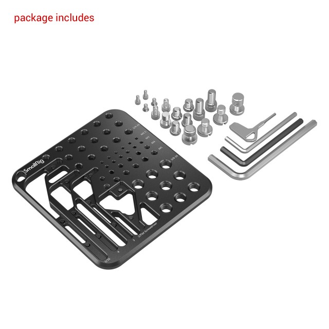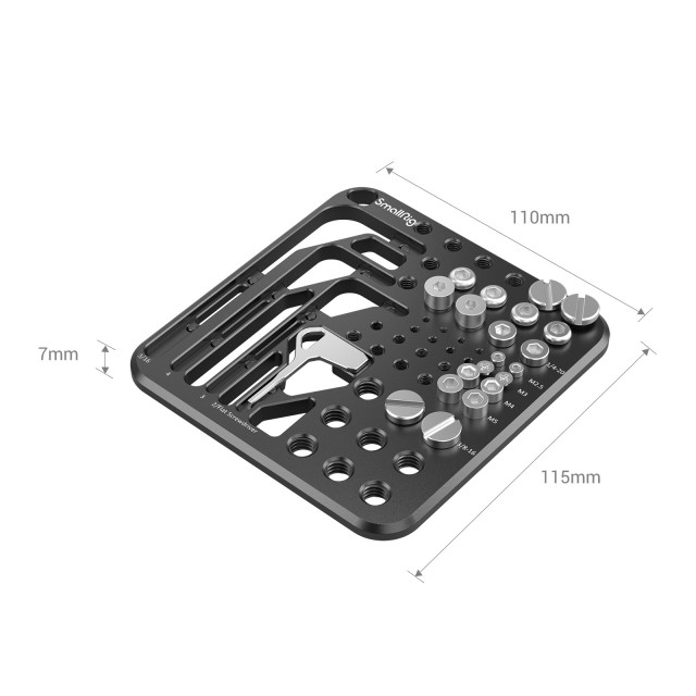 Die SmallRig MD3184 Schrauben- und Sechskantschlüssel-Aufbewahrungsplatte ist für häufig verwendete Schrauben und Sechskantschlüssel für Kamerakits gedacht. Es handelt sich um eine Aufbewahrungsplatte mit 4 Sechskantschlüsseln (3/16、3、4、2/ Flachkopfschraubendreher) und verschiedenen Schrauben wie 2 1/4"-20 Flachkopfschrauben, 8 1/4"-20 Sechskantschrauben für Käfige, L-Winkel, QR-Platten, Bodenplatten, Griffe, Stangenklemmen, Deckplatten und Monitore, 2 M4-Sechskantschrauben und 2 M5-Schrauben, 2 M3-Kreuzschlitzschrauben für die Montage von Rosetten, 2 M2-Schrauben. 5 Sechskantschrauben zur Sicherung des Käfigs gegen Verdrehen und 2 3/8"-16 Flachkopfschrauben für QR-Platten und Grundplatten. Der Gewindeschutz wird erreicht, indem die Sechskantschlüssel mit einem Magneten festgehalten und die Schrauben an den Gewindelöchern befestigt werden. Für einen bequemen und präzisen Zugriff sind klare, lasergravierte Spezifikationsmarkierungen vorhanden. Die Aufbewahrungsplatte wird mit einem Flanell und einem Riemenloch für einfache Aufbewahrung und Transport geliefert.