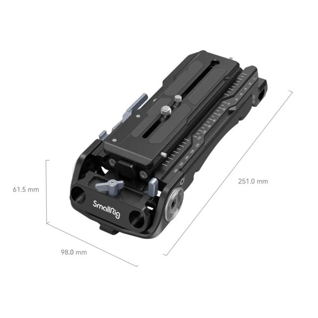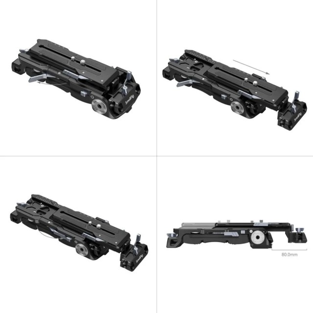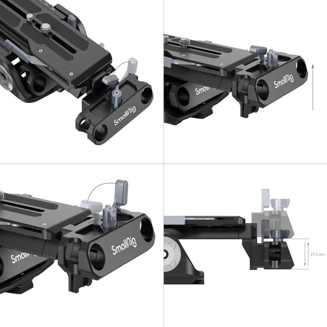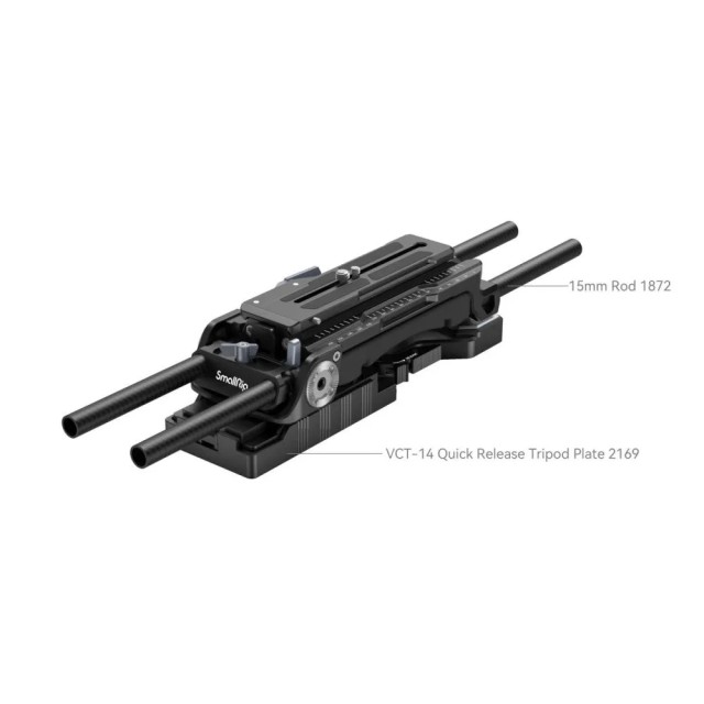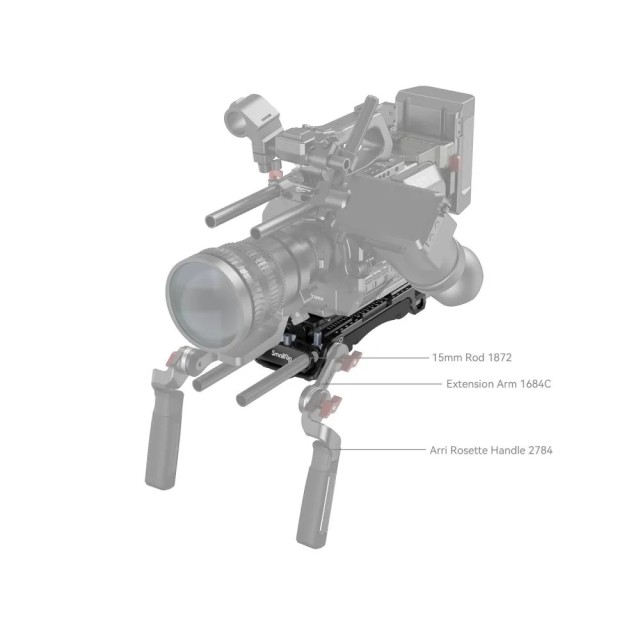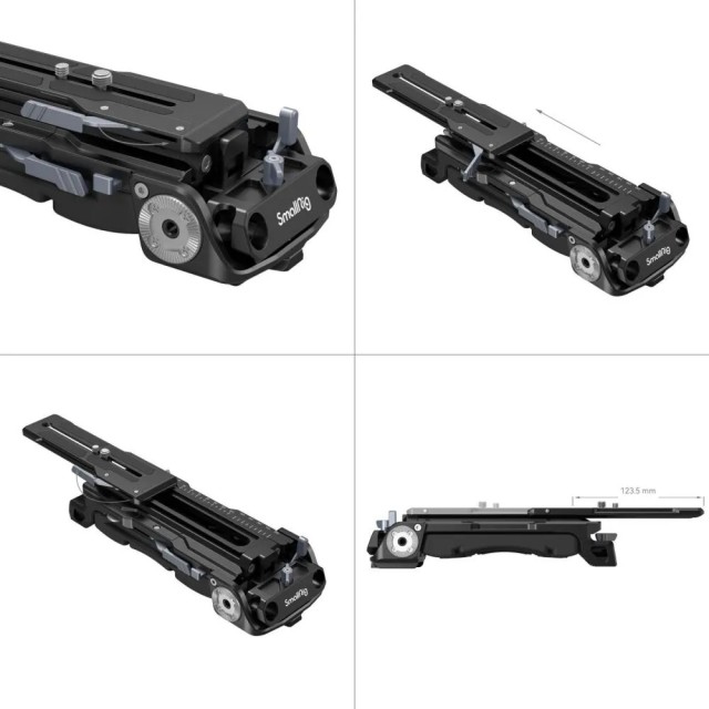 Universal Shoulder Rig (Kompatibel mit Sony VCT-14 Platte) 2837C ist für die Sony VCT-14 Schnellwechselplatte konzipiert. Es besteht aus einer SmallRig-Schnellwechselplatte an der Oberseite, an der die Kamera befestigt wird, und einer Manfrotto 501-Schnellwechselplatte, die ein Schulterpolster verbindet. der 2837B ermöglicht einen schnellen Wechsel zwischen Schulteraufnahmen, Handaufnahmen und Stativaufnahmen. Es verfügt auf beiden Seiten über eine Standard-M6-ARRI-Rosettenhalterung, die mit dem Original-Steuergriff von 1810- oder FX9-Maschinen kompatibel ist, sowie über zwei Stangensysteme am vorderen und hinteren Ende mit 15 mm Durchmesser und 60 mm Abstand. Insbesondere kann die vordere Stangenklemme vertikal um 27 mm verstellt werden, um einen Abstand von 85 mm zwischen Objektivmitte und Stangenmitte für Kameras wie FX9, FS5, URSA MINI, CANON C300 usw. zu gewährleisten. der 2837B hilft Ihnen auch, Ihre Kamera auf Ihrer Schulter oder Ihrem Rig auszubalancieren und das Follow Focus System und die Matte Box zu installieren, dank der eingebauten Manfrotto 501 Schnellwechselplatte, die sich um 0-80mm nach vorne verschieben lässt, und der SmallRig Schnellwechselplatte, die sich um 0-120mm nach hinten verschieben lässt. Sie müssen nicht erst das Follow-Focus-System oder die Matte-Box entfernen, da das vordere Stangensystem mit der Manfrotto 501 Platte zusammenpasst. Weitere Merkmale des 2837B sind die 1/4"-20-Gewindebohrungen und 3/8"-16-Gewindebohrungen in der V-förmigen Bodenplatte, die verschiedene andere Schnellwechselplatten und Stative unterstützen. Der Artikel wird mit einem neuen Silikon-Schulterpolster geliefert, das ergonomisch geformt ist, damit sich die menschlichen Schultern weich und bequem anfühlen. Darüber hinaus gibt es einen eingebauten flachen Schraubenschlüssel für einfachen Zugang.