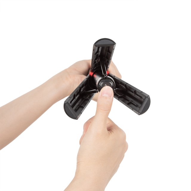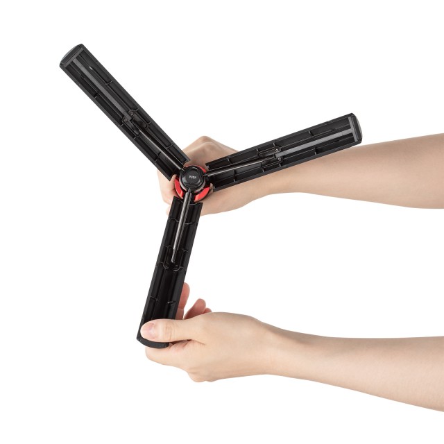 1. Das Stativ öffnet und schließt sich automatisch am unteren Ende, wenn die Stange geöffnet und eingezogen wird. Bitte legen Sie Ihre Hände nicht direkt auf das Stativ, um Verletzungen durch Einklemmen zu vermeiden.
