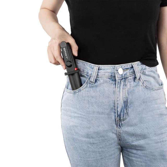 Das tragbare Selfie-Stick-Stativ ST20 3375 von Simorr ist ein vielseitiges Stativ, das sowohl Selfie-Stick- als auch Stativ-Fotografie unterstützt und Kreativen mehr Möglichkeiten bietet. Es verfügt über eine Höhenverstellung von 30 cm bis 130 cm für einen größeren Aufnahmebereich und eine stabilere Mittelsäule, die im ausgeklappten Zustand im Stativmodus maximale Stabilität bietet. Sie wird mit einer abnehmbaren Bluetooth-Fernbedienung und einer universellen Smartphone-Halterung geliefert, die horizontale und vertikale Aufnahmen sowie Multi-Winkel-Einstellungen ermöglicht. Das Stativ kann zusammengeklappt aufbewahrt werden und ist im zusammengeklappten Zustand nur 23,6 cm lang, wodurch es leicht zu transportieren ist.