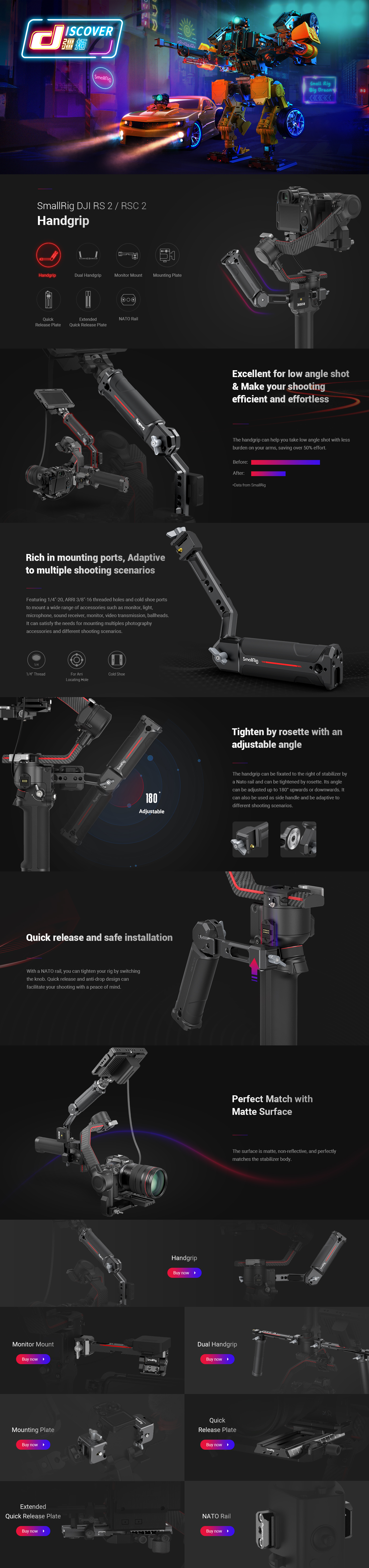 Der SmallRig Sling Handgriff für DJI RS 2 / RSC 2 / RS 3 / RS 3 PRO3028 wurde entwickelt, um die Ermüdung des Arms bei Aufnahmen aus niedrigen Winkeln zu verringern und bietet eine Vielzahl von Befestigungsmöglichkeiten für Zubehör. Ausgestattet mit einem NATO-Anschluss für die Verbindung und verfügt über einen Anti-Entfernungsbolzen, um einen sicheren und schnellen Betrieb zu gewährleisten. Der Handgriff verfügt über mehrere 1/4"-20- und ARRI 3/8"-16-Gewinde, an denen der Magic Arm 2115 und die Monitorhalterung 2903 befestigt werden können. Mit den beiden kalten Schuhhalterungen an der Oberseite und an der Seite des Handgriffs kann er mit Wireless Go, Tonempfänger und Monitor Mount 2905 montiert werden. Der Winkel des Handgriffs lässt sich über einen Ratschenknopf auf 180° einstellen und kann als seitlicher Handgriff verwendet werden, um den Anforderungen verschiedener Aufnahmesituationen gerecht zu werden. Er kann mit dem SmallRig Schultergurt KPAC2466 verwendet werden, um die Belastung der Arme zu verringern. Der Silikongriff ist rutschfest und sorgt für mehr Komfort beim Halten des Geräts. Sein schlankes Design und seine kompakte Struktur passen perfekt zum Stabilisator.