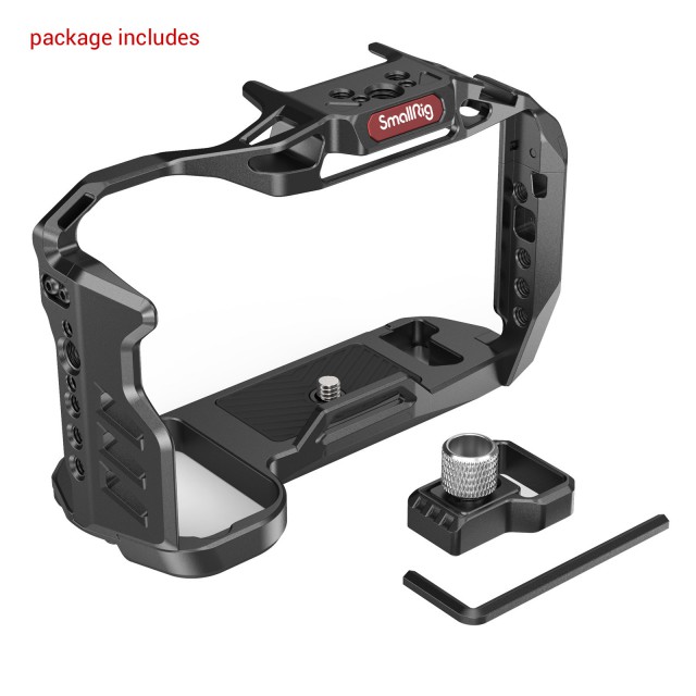 Das SmallRig Standard Cage Kit für Sony Alpha 7S III 3180 fixiert die Kamera sicher mit einer 1/4"-20 Schraube an der Unterseite und einer M2,5 Schraube an der Seite. Die M2,5-Schraube muss durch die Löcher für den Schultergurt an der Seite der Kamera geführt werden. Der Käfig der 3065 ist mit mehreren Standardbefestigungspunkten ausgestattet und bietet vollen…