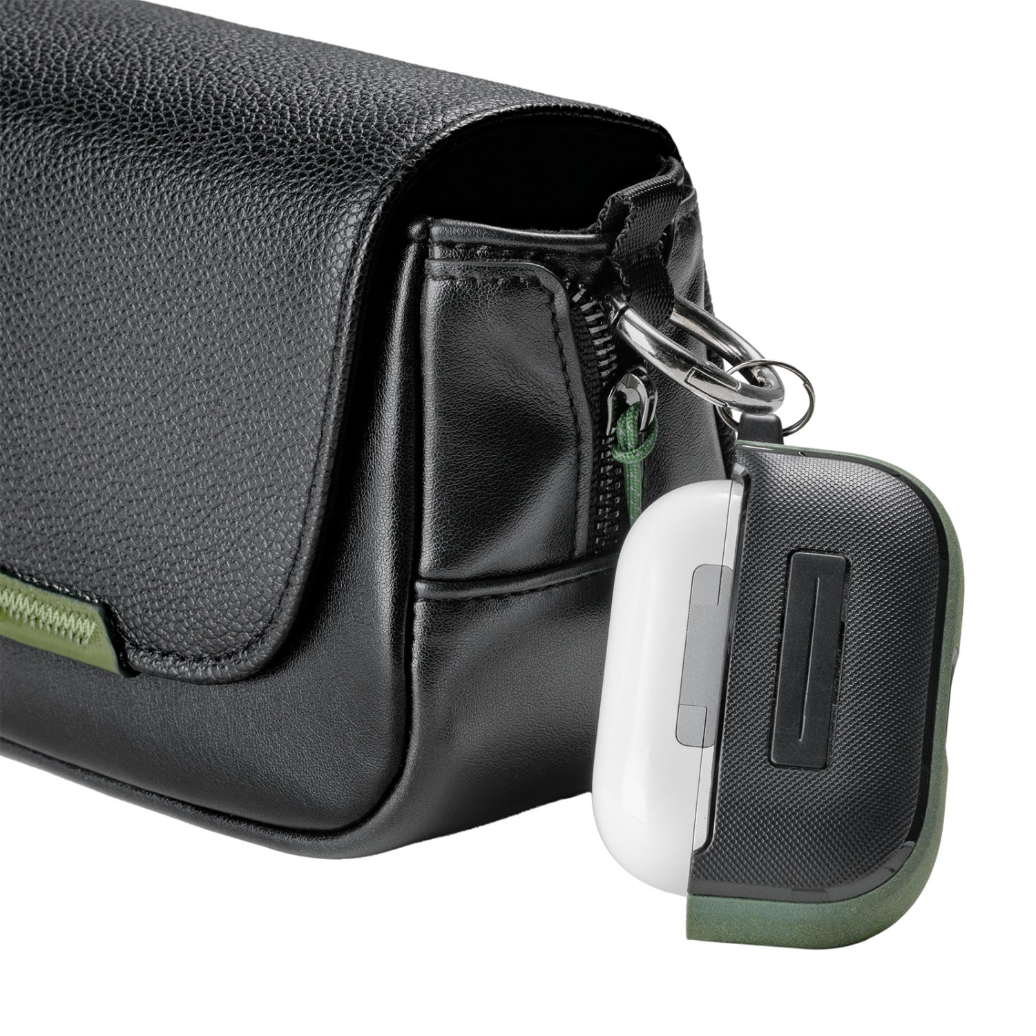 Die Tasche kann als eigenständige Umhängetasche oder als Rucksack-Einsatz verwendet werden, was durch einen mitgelieferten Schnellverschluss-Schultergurt für flexible Nutzung ermöglicht wird. Ein verdecktes AirTag-Fach ermöglicht die sichere Ortung des Geräts. Diese vielseitige Tasche erfüllt die Anforderungen der urbanen Fotografie mit Stil und Funktionalität.