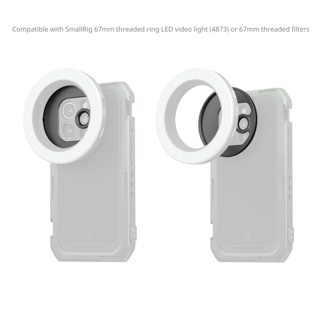 1. Erleichtert die Befestigung von Filtern mit 67-mm-Gewinde oder SmallRig-LED-Videolichtringen mit 67-mm-Gewinde an T-Mount-Telefonkäfigen oder Objektivrückwänden.