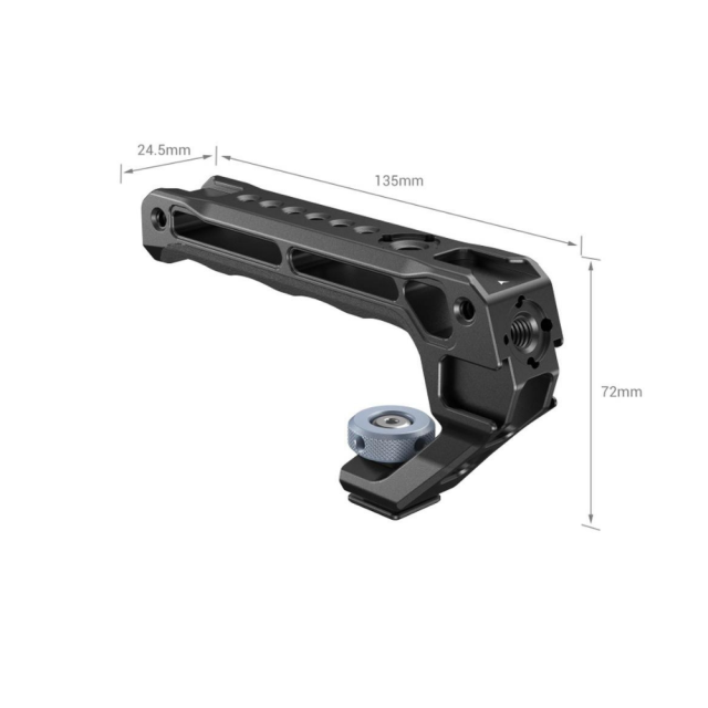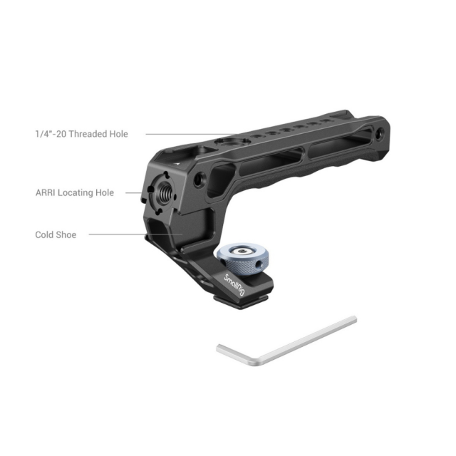 Der SmallRig Top Handle mit Cold Shoe 3764 wurde entwickelt, um Aufnahmen aus niedrigen Winkeln zu erleichtern und die Belastung der Arme zu reduzieren. Der ergonomische Griff ist mit rutschfestem und frostsicherem Silikon ausgestattet, fühlt sich angenehm an und wiegt dank einer ausgehöhlten Struktur nur 129 g. Er verfügt über 3 vordere und 2 hintere Kühlschuhe, die die gleichzeitige Montage von Mikrofon, LED-Licht, Monitor und anderem Zubehör ermöglichen. ARRI 3/8"-16-Aufnahmebohrungen unterstützen die Monitorhalterungen 2903 und 2348 zur Befestigung von Monitoren; 1/4"-20-Gewindebohrungen unterstützen den Magic Arm 2070 für Monitore und die Fernsteuerung 2924 für Aufnahmen. Ein Inbusschlüssel hilft beim Festziehen der Feststellschraube und erleichtert die Montage und Demontage.