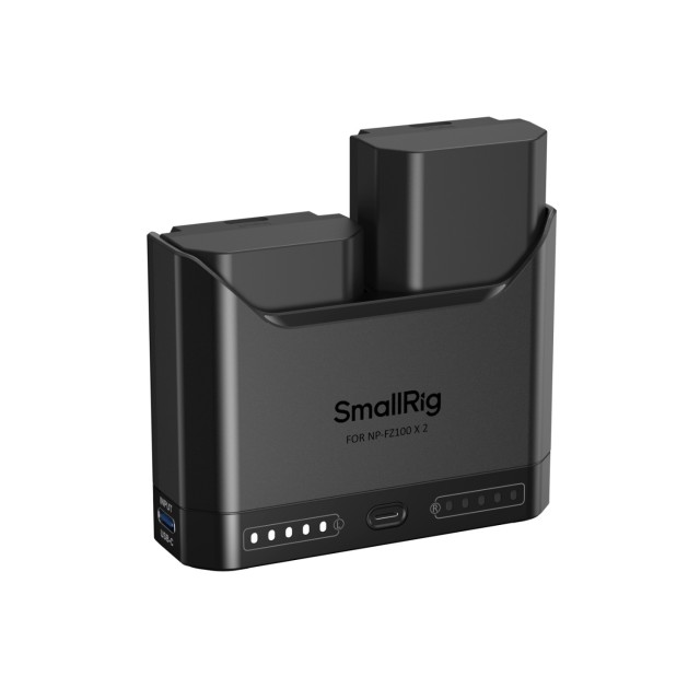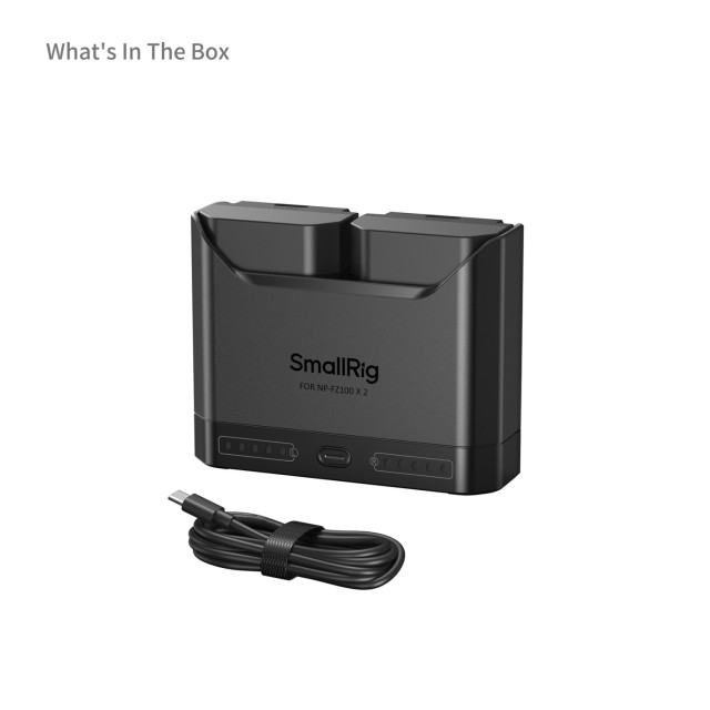 Das SmallRig Turbo-Ladegerät-Set für NP-FZ100-Kamerabatterien 5483 enthält zwei Hochleistungsbatterien und ein Zweikanal-Schnellladegerät. Mit einem vollständigen Decodierungschip gewährleistet dieses Set die vollständige Kompatibilität mit Sony NP-FZ100-Batterien, wodurch Popup-Warnungen vermieden werden und gleichzeitig die Stromanzeige in der Kamera sowie die Verwendung des Original-Ladegeräts unterstützt werden.