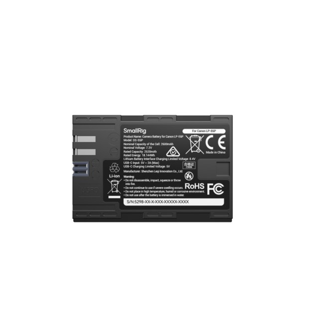 Dank einer Hochstrom-Ladelösung (5 V/2 A) ist der Akku in etwa 2,5 Stunden vollständig aufgeladen. Mit einer beachtlichen Kapazität von 2600 mAh bietet dieser Akku eine verlängerte Laufzeit. Ein vollständig decodierter Chip gewährleistet die vollständige Kompatibilität mit den Akkumodellen Canon LP-E6P und LP-E6NH und garantiert, dass keine Systemwarnungen oder Fehler auftreten.