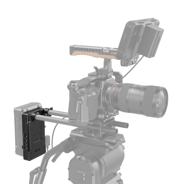 1. Die standardmäßige V-Mount-Platte passt zu den meisten V-Mount-Akkus und sorgt für eine längere Lebensdauer der Batterien in Ihrer Kamera