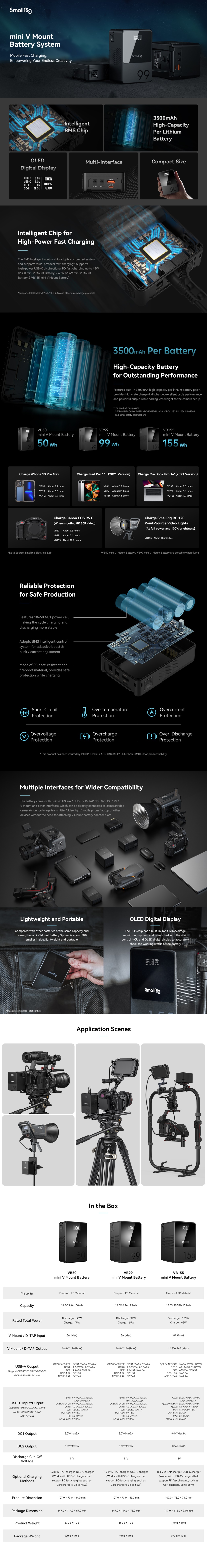 1. Kompakt und leicht zum Mitnehmen: Die VB-Serie wurde entwickelt, um die Filmindustrie zu entlasten, und ist etwa 30% kleiner als herkömmliche V-Mount-Batterien!