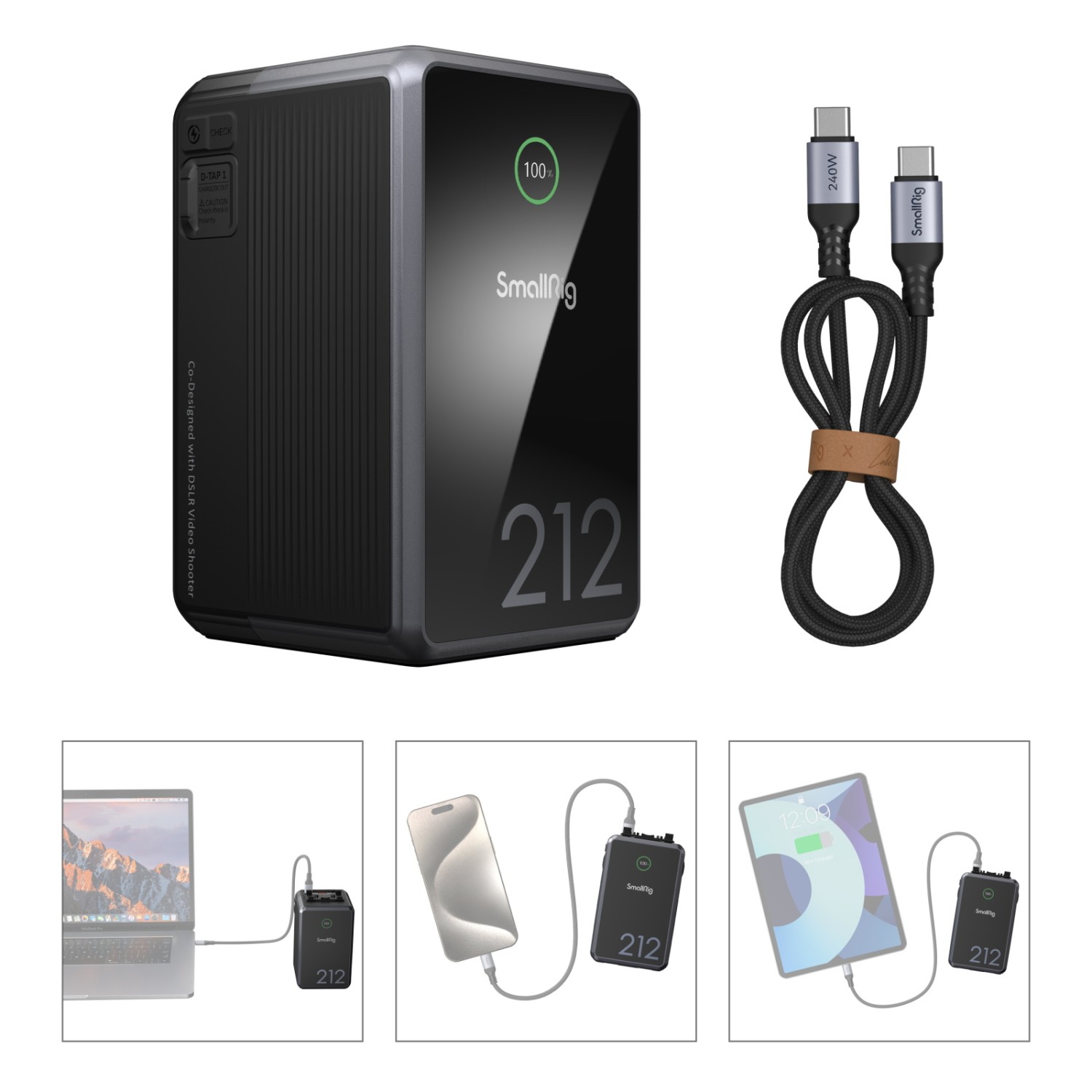 Die SmallRig x Caleb Pike VB212 mini V Mount Battery 4293 verfügt über ein hochintegriertes Design, das die Größe der Batterie reduziert und sie leichter und tragbarer macht. Die Batterie kombiniert Schnellladeprotokoll-Chips, MCU, Spannungssteuerung und BMS-Chips. Sie unterstützt eine breite Palette von Schnellladeprotokollen (PD 3.1 / QC 3.0 / AFC usw.), Zwei-Wege-PD-Schnellladung und -Entladung mit maximal 140 W sowie adaptive Spannungs-/Stromregelung usw. Darüber hinaus sorgt das maßgeschneiderte intelligente BMS-System für einen schnelleren und sichereren Ladevorgang durch Überstrom-, Kurzschluss-, Übertemperatur- und Überspannungsschutz usw. Der Batteriekörper ist mit D-Tap / USB-C / USB-A / DC 8V-OUT / DC12V-OUT / BP-Schnittstellen ausgestattet, die Kamera / Videokamera / Monitor / drahtlosen Bildsender / LED-Videoleuchte / Handy / Laptop usw. aufladen oder mit Strom versorgen können, ohne V-Mount-Platten zu verwenden.