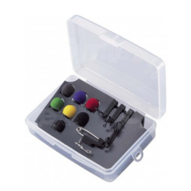 Lieferumfang: Enthält vier Mikrofonhalterungen (horizontal/gleichförmig, vertikal/gleichförmig, horizontal/dual und mit Sicherheitsnadeln), sechs Urethan-Windschutze (rot, gelb, grün, blau, grau und schwarz) und einen Windschutz aus Metallgewebe.