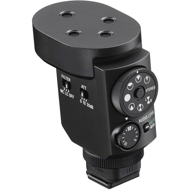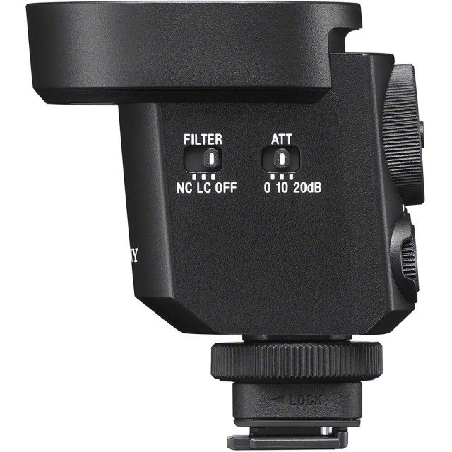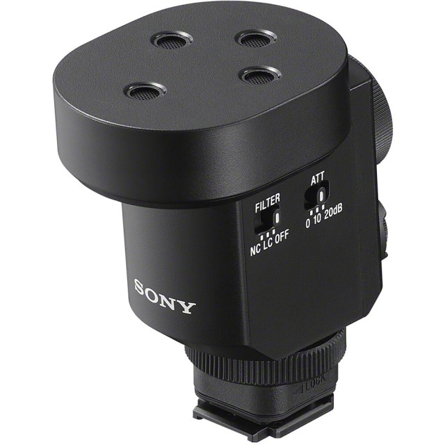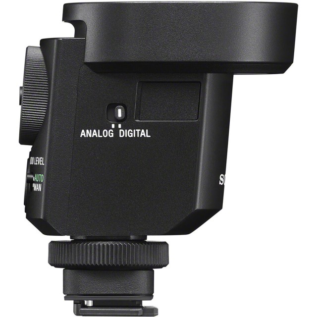 Das Mikrofon bietet außerdem einen digitalen Rauschfilter und einen Hochpassfilter, um die Übertragung von Kameravibrationen in die Aufnahme zu reduzieren, Vierkanal-Aufnahme (nur bei kompatiblen Kameras; kanäle 3 und 4 omnidirektional, 1 und 2 direktional) und einen einfachen Anschluss über den Multi-Interface-Schuh, der Strom und Audio für kompatible Kameras mit digitaler Audioschnittstelle überträgt (Alpha A1, A3000/A6000/A6100/A6300/A6400/A6500/A6600/A6700, A7/A7 II/A7 III/A7 IV/A7C/A7R/A7R II/A7R III/A7R IV/A7R V/A7S/A7S II/A7S III, A9/A9 II, NEX-6, ZV-E10/ZV-E1). Der Digital/Analog-Schalter gewährleistet die Kompatibilität mit Kameras, die eine analoge Schnittstelle verwenden.