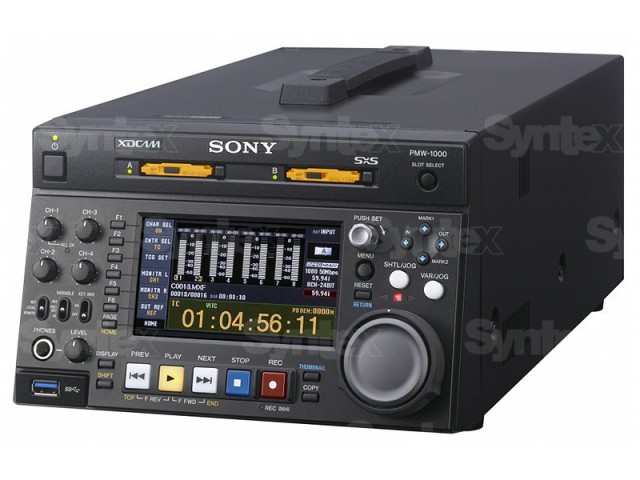Das kompakte, erschwingliche PMW-1000 SxS-Memory-Recording-Deck verfügt über zwei SxSExpressCard™-Speicherkartensteckplätze, die eine Vielzahl von HD- und SD-Aufnahmen und -Wiedergaben ermöglichen, einschließlich XDCAM HD422 mit 50 Mbps. Der Recorder in halber Rack-Größe verfügt über SD-/HD-SDI-Schnittstellen und Gigabit-Ethernet-Schnittstellen (1000BASE-T) für den nichtlinearen Netzwerkbetrieb sowie über eine RS-422-Schnittstelle und eine Jog-/Shuttle-Steuerung, die eine "lineare" Aufnahme und Bearbeitung ermöglichen.