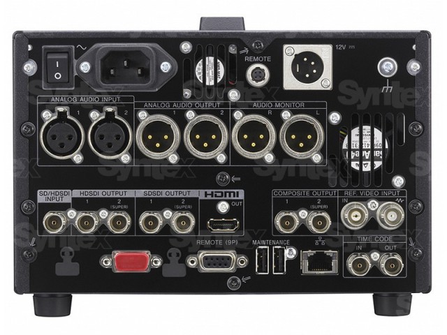 Das Deck verfügt über SD/HD-SDI-Schnittstellen und Gigabit-Ethernet (1000BASE-T) für den vollständigen Netzwerkbetrieb. Eine Standard-HDMI-Schnittstelle ermöglicht einfache Überwachungsfunktionen.