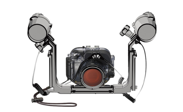 Für erweiterte Konfigurationen verfügt das Gehäuse über einen oben angebrachten Blitzschuh für optionales Zubehör wie externe Leuchten sowie drei 1/4"-20-Gewindehalterungen an der Unterseite zur Befestigung von Griffen, Trays oder Stabilisierungsvorrichtungen. Dieses aus strapazierfähigem Kunststoff geformte Gehäuse ist sowohl leicht als auch robust – perfekt für Tauchen, Schnorcheln und Unterwassererkundungen.