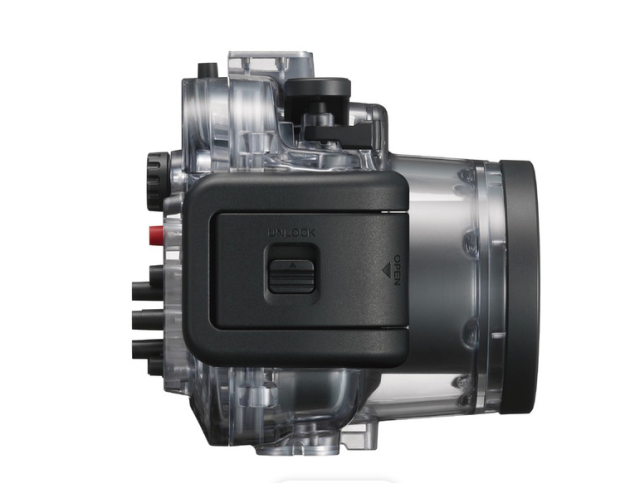 Das Gehäuse bietet vollen mechanischen Zugriff auf alle wichtigen Kamerasteuerungen, darunter ein drehbares Objektivringrad, einen Zoomhebel und Drucktasten für die Menünavigation, und gewährleistet so ein nahtloses Aufnahmeerlebnis auch unter Wasser. Ein großer Auslöser im Hebelstil ermöglicht eine einfache Bedienung, selbst mit Handschuhen.