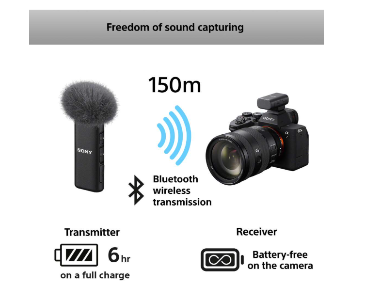 Das Mikrofon ist auf Komfort ausgelegt und verfügt über intuitive Bedienelemente am Gerät, darunter einen Dämpfungsregler für schnelle Pegelanpassungen und einen Sicherheitsaufnahmemodus, der Audio gleichzeitig auf zwei Pegeln (-0 dB und -20 dB) aufzeichnet, um Verzerrungen zu vermeiden. In Kombination mit kompatiblen Sony-Kameras kann der Empfänger direkt über den Multi-Interface-Schuh (MI-Schuh) mit Strom versorgt werden, sodass keine zusätzlichen Kabel oder Batterien erforderlich sind.