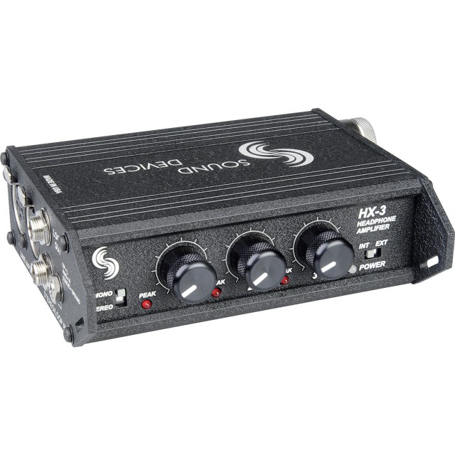 Tragbarer Kopfhörerverstärker mit drei Kanälen.