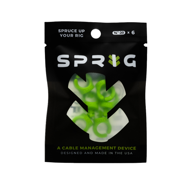 Da die Sprig-Modelle die Funktionalität einer 1/4"-20-Schraube besitzen, genügt eine Drehung des Handgelenks, um eine feste Passform zu erreichen oder sie zu lösen, um sie zu entfernen. In Eile? Nur zu und lösen Sie sie mit einem festen Ruck. Der robuste und flexible Sprig kann damit umgehen.