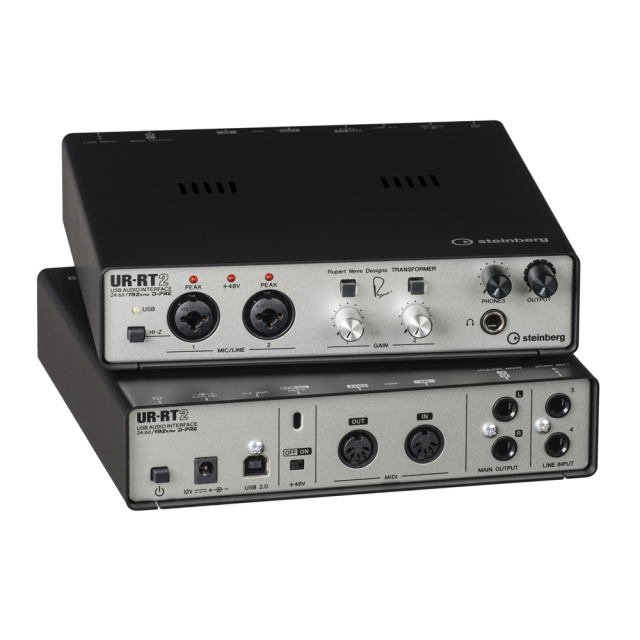 Das Steinberg UR-RT2 ist ein Audio-Interface mit 4 Eingängen und 2 Ausgängen, MIDI-Anbindung und Rupert Neve Designs Transformatoren an den ersten beiden Eingängen. Durch die Kombination von hochwertigen D-PRE Vorverstärkern und Rupert Neve Designs Transformatoren garantiert das UR-RT eine musikalische und ausdrucksstarke Klangfarbe, die reich an harmonischen Frequenzen ist und zum Beispiel Gesang, Akustikgitarre und anderen Instrumenten mit einem großen Dynamikbereich zugute kommt.