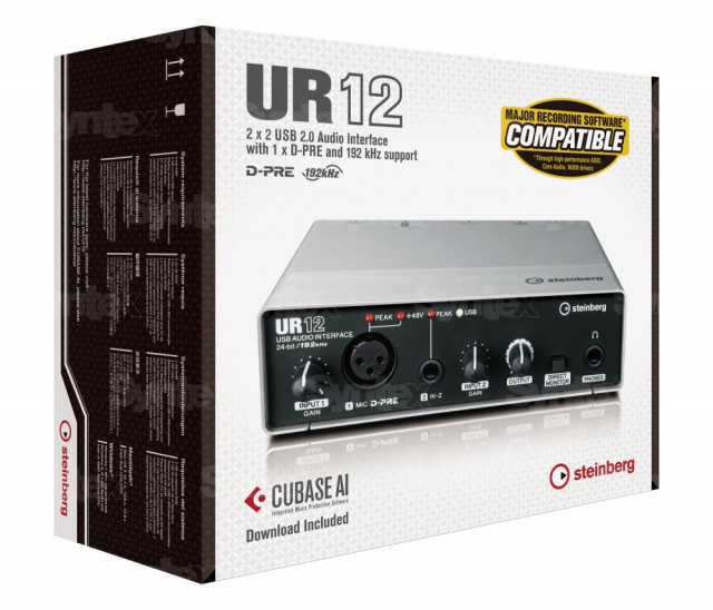 Die professionelle externe Soundbar UR12 wurde in erster Linie für unabhängige Künstler oder mobile Aufnahmen entwickelt, wo sie trotz ihres günstigen Preises eine überragende Klangqualität und ausreichende Funktionen bietet. Er unterstützt Abtastraten von bis zu 192 kHz, bietet hervorragende Verarbeitung und Elektronik und unterstützt auch iPads. Auf der Vorderseite befindet sich ein Neutrik-XLR-Anschluss für den Mikrofonanschluss, hinter dem sich ein hochwertiger Yamaha D-PRE-Vorverstärker mit Class-A-Schaltung und Phantomspeisung befindet. Der zweite Kanal ist als hochohmige Buchse für den Anschluss von Musikinstrumenten wie E-Gitarren ausgeführt. Jeder Kanal bietet eine unabhängige Verstärkungsregelung und eine Spitzenwertanzeige, und natürlich gibt es einen Kopfhörerausgang, einen Pegelregler für das Ausgangssignal und einen Direct-Monitor-Schalter für die latenzfreie Verbindung von Eingängen und Ausgängen. Auf der Rückseite befinden sich analoge Ausgänge mit RCA/Cinch-Anschlüssen, ein USB 2.0-Anschluss und ein Mini-USB-Anschluss für den Anschluss eines optionalen Netzteils. Eine Cubase AI Lizenz ist im Lieferumfang enthalten.