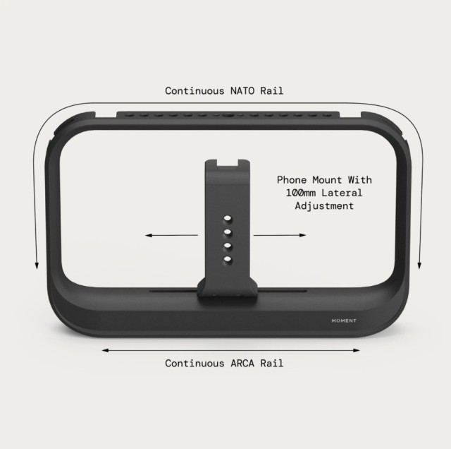 Der Moment SuperCage wurde für mobile Filmemacher entwickelt, die ihre Produktionsmöglichkeiten erweitern möchten. Der Käfig ist aus leichtem und dennoch robustem Aluminium gefertigt und hält Ihr Smartphone sicher mit einer verstellbaren Klemme mit schützenden Gummipuffern, die sich an verschiedene Telefongrößen und Tastenanordnungen anpassen. Das offene Schienensystem umfasst NATO-Schienen an den Seiten und oben sowie einen Arca-kompatiblen Sockel, der umfangreiche Befestigungsmöglichkeiten mit (4) 3/8"-16-Gewinden, (4) Cold-Shoe-Halterungen und (39) 1/4"-20-Gewinden zum Anbringen von Mikrofonen, Leuchten, Monitoren und anderem Zubehör bietet.