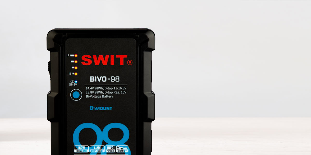 BIVO-98 ist eine 14,4V (11-16,8V) und 28,8V (22-33,6V) Bi-Voltage B-Mount Batterie, für ARRI Kameras und verschiedene kompatibel mit normalen Spannung Kameras und Cinegears. Die Batterie erkennt den ID-Pin-Widerstandswert der B-Mount-Platte und gibt dann 14,4V oder 28,8V aus, ohne dass ein Missbrauchsrisiko besteht.