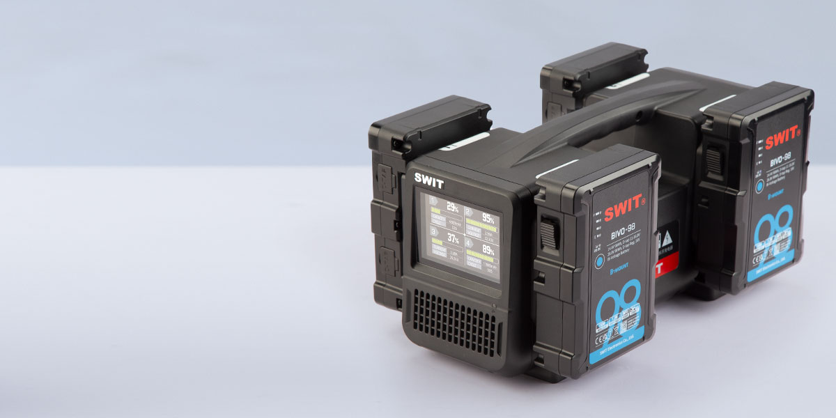 Sie können 4x BIVO-98 gleichzeitig mit dem SWIT PC-P461B B-Mount-Ladegerät bei 33,6V, 44W Schnellladung aufladen. Das Ladegerät benötigt ca. 3 Stunden, um 4x BIVO-98 Akkus vollständig aufzuladen.