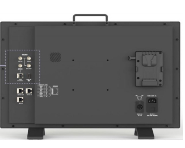 Der Monitor wird mit 12–17 V Gleichstrom oder 100–240 V Wechselstrom betrieben, verbraucht 45 W und arbeitet zuverlässig bei 0–50 °C und 10–90 % Luftfeuchtigkeit. Durch seine kompakte und robuste Bauweise (530,6 × 364,3 × 74,2 mm, 6,05 kg) eignet er sich für Studio-, Außen- und Live-Produktionsumgebungen.