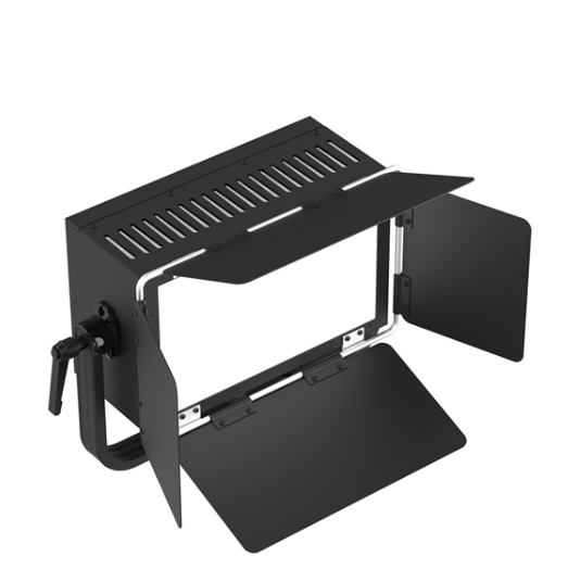 Zu den Stromversorgungsoptionen gehören ein PowerCON TRUE1-Wechselstromeingang und eine Durchschleifverbindung sowie ein 4-poliger XLR-Gleichstromeingang (11–17 V) für den Einsatz vor Ort. Zum Zubehör gehören eine 4-flügelige Metallblende und eine Bügelhalterung, die eine flexible Steuerung der Lichtrichtung und des Streulichts ermöglichen.