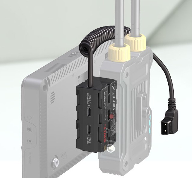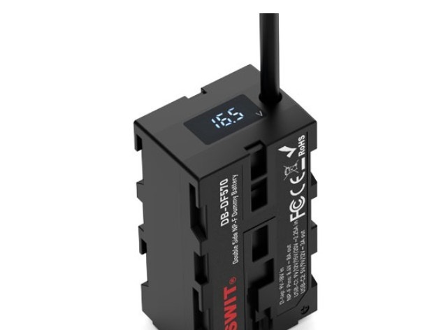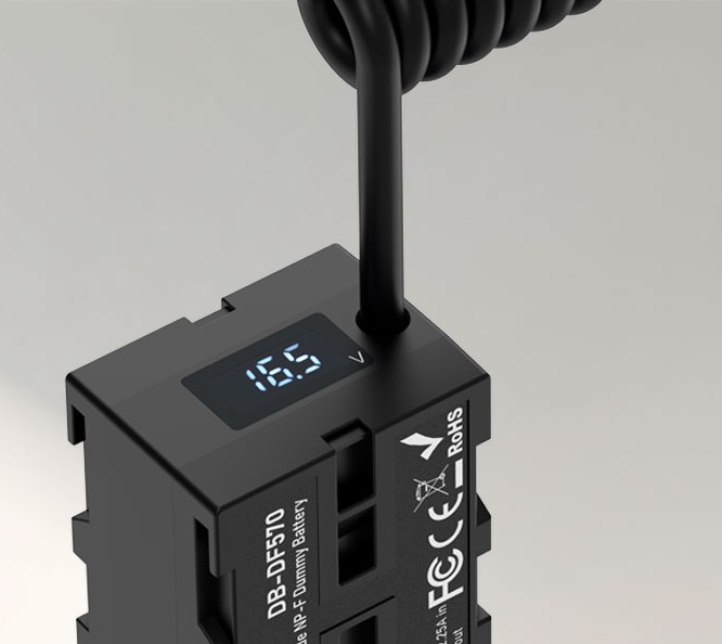 Der Dummy-Akku DB-DF570 unterstützt eine D-Tap-Stromeingabe von 9–18 V oder eine USB-C-PD-Eingabe von 45 W und wandelt diese in eine geregelte 8,4-V-8-A-Ausgabe über zwei NP-F-Pins und eine USB-C-PD-Ausgabe von 36 W um.