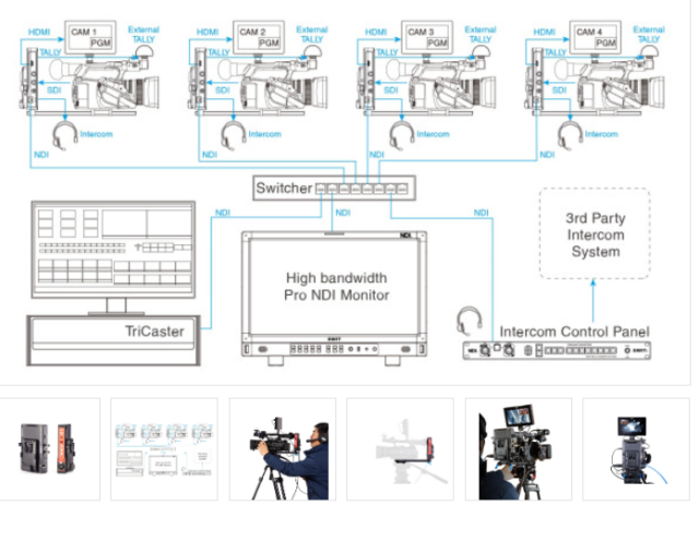 Das integrierte Intercom-System ist mit dem ET-N80-Bedienfeld verbunden und verfügt über Stummschaltungs-, Anruf- und Kopfhöreranschlussfunktionen für die Echtzeitkommunikation mit dem Team. Die integrierte TALLY-Funktion und die Unterstützung für eine externe TALLY-Lampe sorgen für eine klare Anzeige des On-Air-Status.