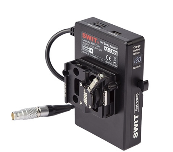 Die SWIT KA-R30S V-Mount-Hotswap-Platte ist eine spezielle Lösung für die Kameras ARRI ALEXA MINI und MINI LF, die einen nahtlosen Batteriewechsel ohne Ausschalten der Kamera ermöglicht. Ausgestattet mit integrierten 43-Wh-Batteriezellen, die eine konstante Last von 200 W liefern können, gewährleistet die KA-R30S einen unterbrechungsfreien Betrieb von mindestens 2 Minuten während des Batteriewechsels, sodass der Bediener genügend Zeit hat, eine neue Batterie einzusetzen, ohne dass die Stromversorgung unterbrochen wird.