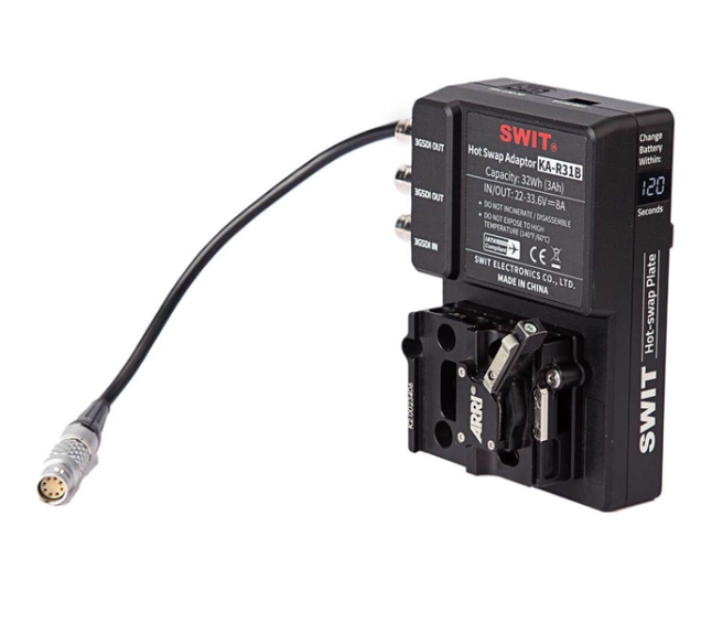 Die SWIT KA-R31B B-Mount-Hotswap-Platte wurde für ein nahtloses Energiemanagement bei ARRI ALEXA MINI- und MINI LF-Kameras entwickelt. Sie ist für die direkte Installation konzipiert, unterstützt B-Mount-Akkus und liefert über einen 8-poligen LEMO-Gleichstromausgang eine geregelte Spannung von 28 V (22–33,6 V) an die Kamera, wodurch eine zuverlässige Leistung für hochwertige Kinoproduktionen gewährleistet ist.