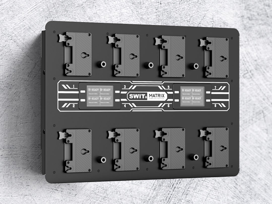 Das 8-Kanal-Wandladegerät SWIT MATRIX-A8 bietet eine extrem schnelle gleichzeitige Ladung von bis zu 8 Akkus mit maximal 6 A pro Kanal. Es unterstützt 14-V-/28-V-Akkusysteme und verfügt über einen Gold-Mount-Anschluss. Perfekt für die effiziente Stromversorgung mehrerer Geräte, Katalognummer MATRIX-A8.