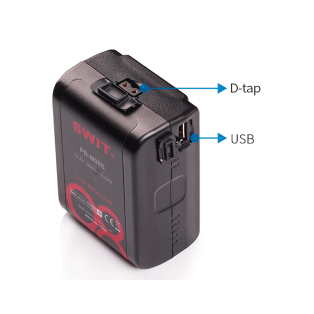 Das PB-M98S kann mit allen Standard-V-Mount-Ladegeräten und D-Tap-Ladegeräten geladen werden. Der maximale Ladestrom beträgt 3A