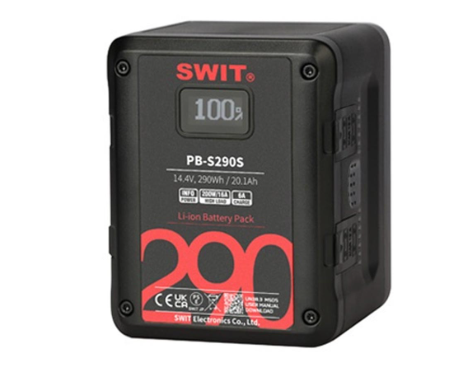Der SWIT PB-S290S 290Wh Multi-Sockets Square Cine Battery wurde für professionelle Kino- und Broadcast-Anwendungen entwickelt, die eine lange Laufzeit und hohe Belastbarkeit erfordern. Mit einer Nennspannung von 14,4 V und einer großen Kapazität von 290 Wh (20,1 Ah) kann der PB-S290S Standard-ENG-Kameras etwa 10 Stunden lang und ARRI ALEXA-Kameras etwa 3,5 Stunden lang mit Strom versorgen.