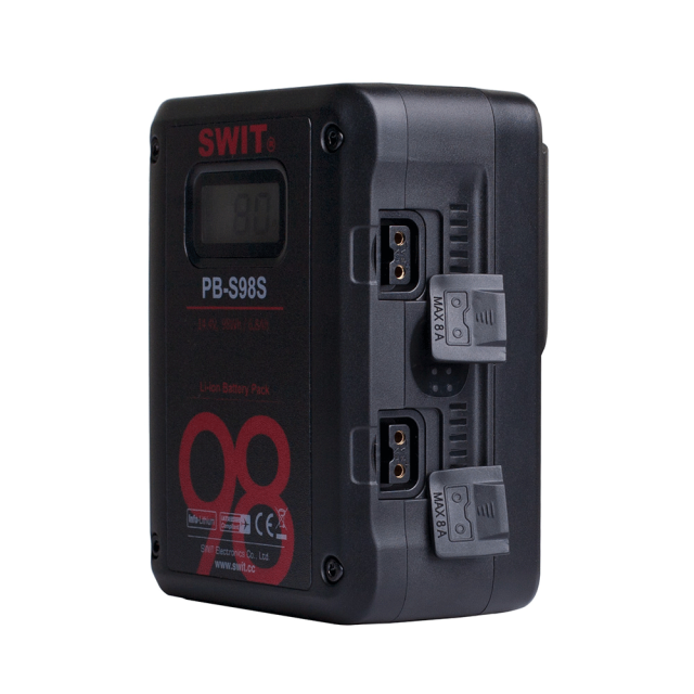Das PB-S98S ist mit 2 D-Tap-Gleichstromausgängen ausgestattet, über die andere Geräte an der Kamera mit Strom versorgt werden können. Der maximale Ausgangsstrom der D-Tap-Buchse beträgt 8A, 100W