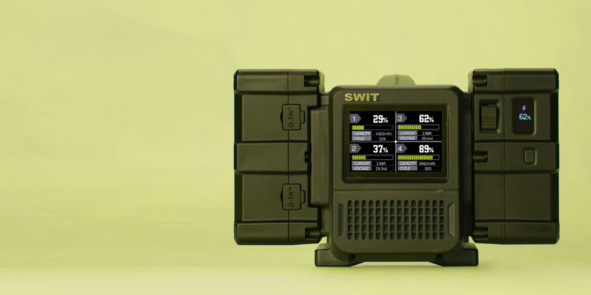 PC-P461B kann 4x B-Mount-Akkus gleichzeitig mit 33,6V/3A, 100W pro Kanal und superschneller Ladegeschwindigkeit aufladen und so bis zu 60% Ladezeit im Vergleich zu normalen Ladegeräten sparen.