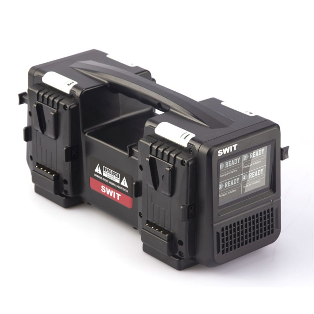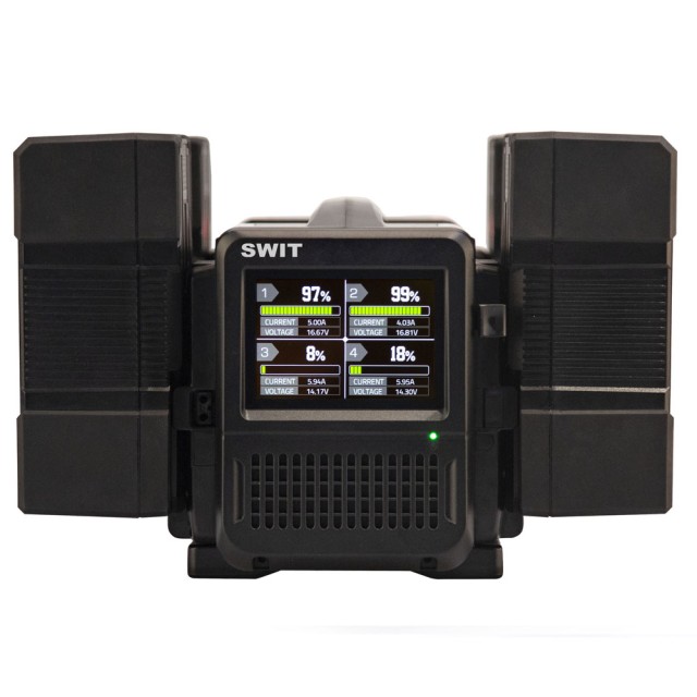Das SWIT PC-P461S ist ein simultanes 4-Kanal 4x100W Super Fast V-Mount Ladegerät mit LCD-Infodisplay für den individuellen Batterieladestatus.