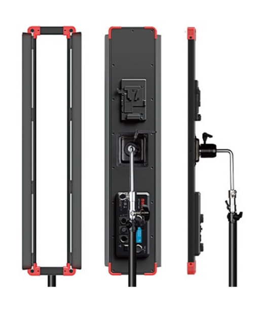 Der PL-E90L wird mit V-Mount- oder Gold-Mount-Akkus oder einer breiten Eingangsspannung von 11–36 V DC betrieben und ist vielseitig für Studio- oder Außenaufnahmen einsetzbar. Die mitgelieferten 2-flügeligen Metall-Barn Doors ermöglichen eine präzise Lichtformung, und das Panel ist leicht und tragbar, sodass es sich ideal für ein Interview-Kit mit 3 Leuchten eignet.