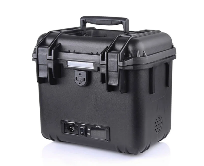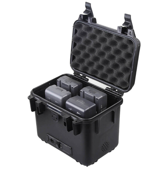 Die SWIT S-4020 ist eine robuste 12V/24V-Stromversorgungsbox für vier Akkus, die