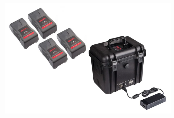Das SWIT S-4030 KIT ist eine professionelle 24-V-Stromversorgungslösung, die speziell für Film-, Fernseh- und mobile Produktionsaufbauten entwickelt wurde, die eine stabile Stromversorgung mit hoher Kapazität erfordern. Das Kit kombiniert die S-4030 Dual-24-V-Stromversorgungsbox mit vier S-8180S 220-Wh-Hochleistungs-V-Mount-Akkus und liefert eine Gesamtleistung von 880 Wh.