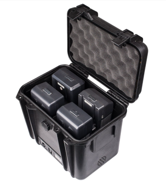 Unterstützt bis zu vier V-Mount-S-8183S-Batterien für eine längere Laufzeit (insgesamt 1080 Wh)